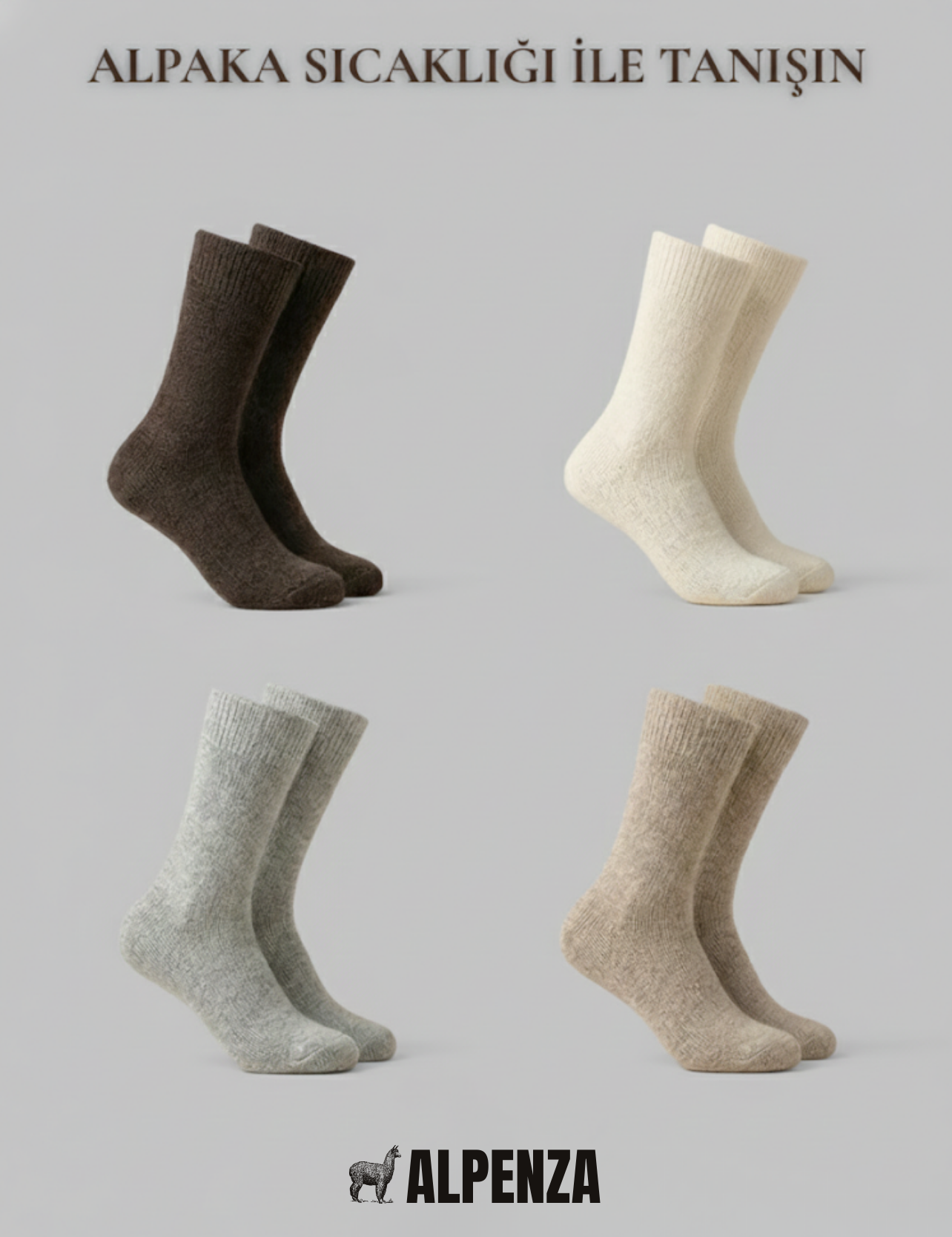🦙 Gerçek alpaka yünü ile üretilen Alpenza çorapları, -10°C’de bile ayak sıcaklığınızı 24°C seviyesinde korur. Soğuğu geride bırak, doğanın sunduğu sıcaklığı hisset.